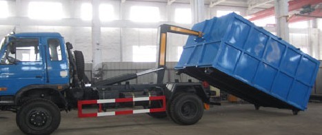 車廂可卸載式垃圾車,又稱勾臂式垃圾車、拉臂式垃圾車。該車廣泛適用與城市街道學(xué)校垃圾處理,可一車配備多個(gè)斗,各個(gè)垃圾點(diǎn)放置多個(gè)垃圾斗,帶自卸功能,液壓操作,方便傾倒。該車的箱體部分完全由液壓系統(tǒng)來(lái)控制,在平日里可將車載垃圾箱放置到各個(gè)垃圾收集站,待垃圾收集滿后,該車可直接開(kāi)赴至垃圾站,通過(guò)液壓系統(tǒng)的操控,可將垃圾車后座上加裝的勾臂放下,掛住站內(nèi)垃圾箱前端的連接點(diǎn),將垃圾箱拉至車體的后座上,此時(shí)即可啟動(dòng)車輛,將垃圾運(yùn)送至垃圾處理站內(nèi),進(jìn)行自卸式傾倒。該車最主要的優(yōu)點(diǎn)就是可一車配多斗,一輛車就可以維持?jǐn)?shù)個(gè)垃圾收集站的運(yùn)轉(zhuǎn),效率高,且箱體為密封式設(shè)計(jì),不會(huì)造成二次污染。