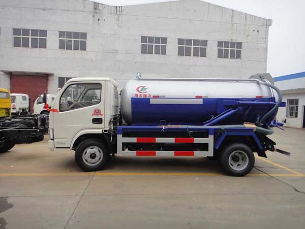 2、  將東風(fēng)小霸王真空吸污車四通閥轉(zhuǎn)換置于排出位置,真空泵繼續(xù)工作,則罐內(nèi)流入壓縮空氣污水會很快排出。